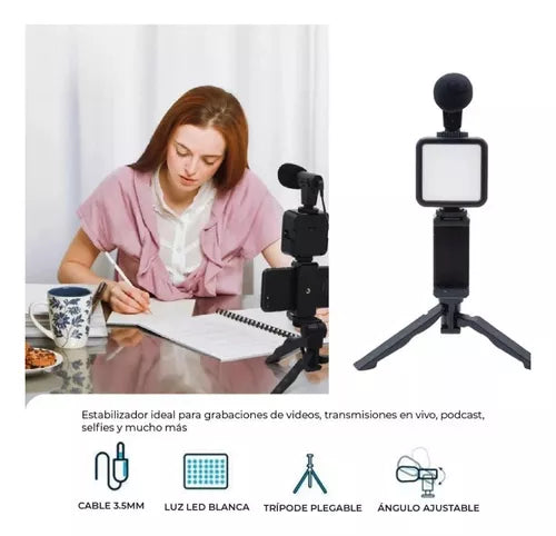 Video Making Kit (Soporte trípode para celular con micrófono y luz led incorporada)