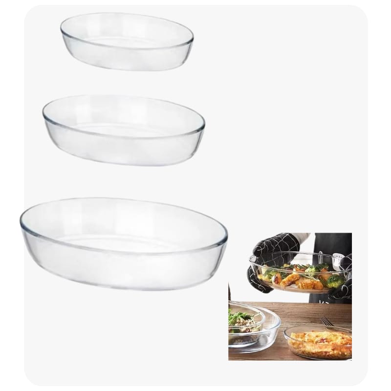 Sets de asadera de vidrio templado transparente de alta resistencia a choque térmico, apto para horno y freezer contiene 3 fuentes de 1.5L/2.0L/3.0L
